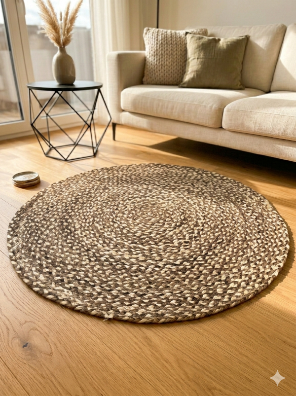 Alfombra yute combinada en color yute natural y color yute marron, de 90cm.