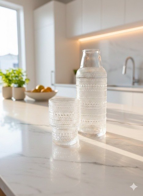 Botellas de vidrio de 1 litro con vaso de vidrio haciendo juego, ideal para quienes le gustan beber mucha agua solos, o si no queres levantarte a la noche a tomar agua, lo podes dejar en la mesita de luz!