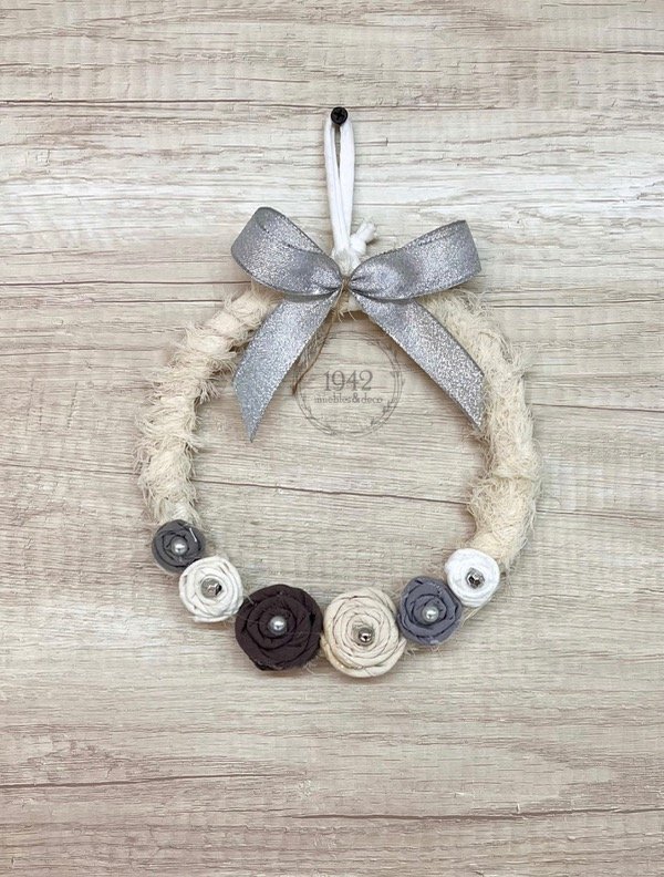 Rosca navideña chica, para decorar la puerta de tu hogar, realizada a mano, flores y detalles surtidos.