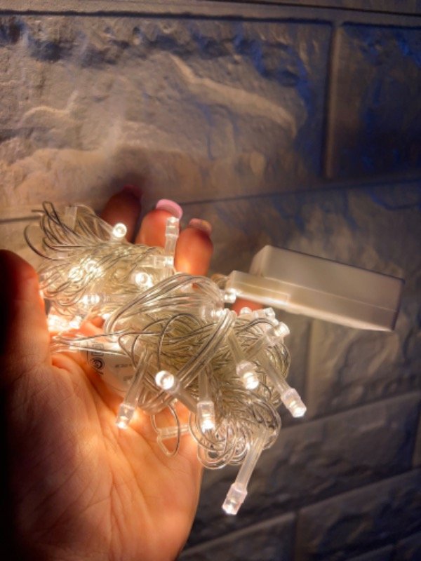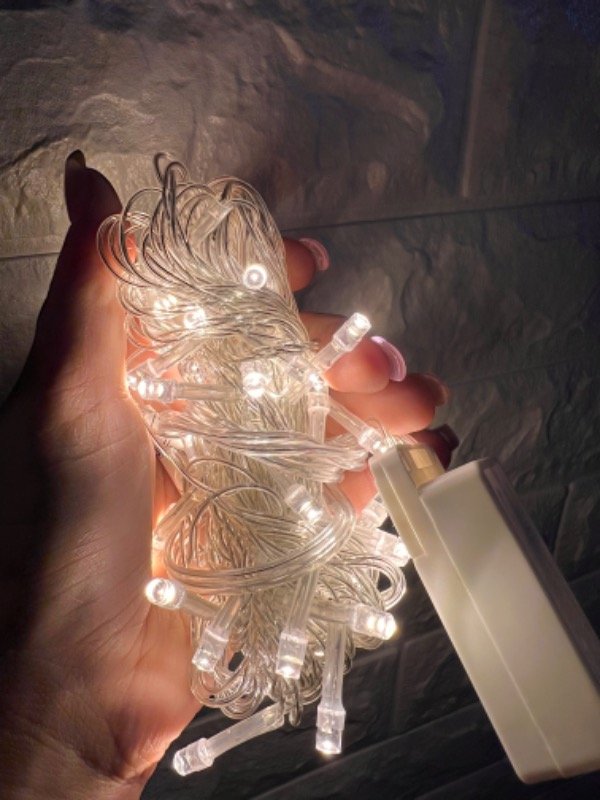 Tiras led de 50 o 100 luces cálidas a 220 con enchufe, ideal para el arbolito.