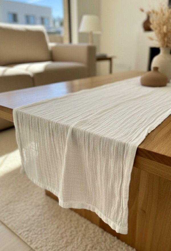 Camino de gasa de algodón, con costuras en sus bordes.